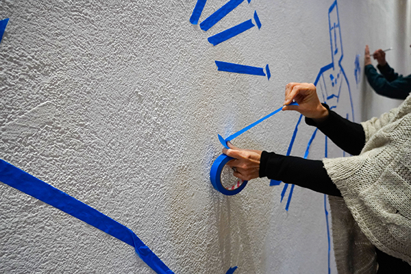 Workshop – Silhouettes in Blue: large-scale drawing with blue masking tape